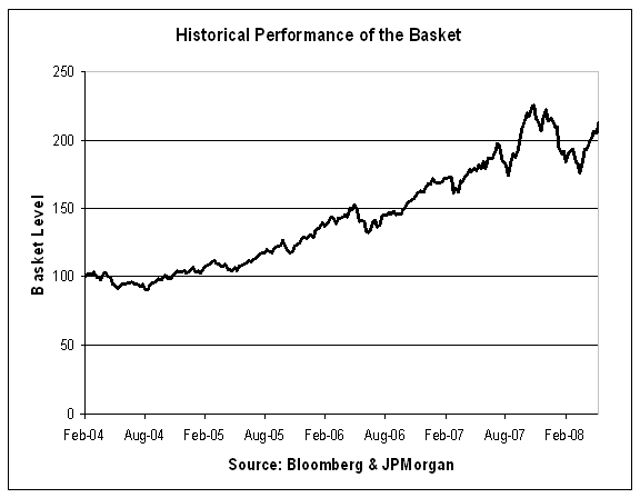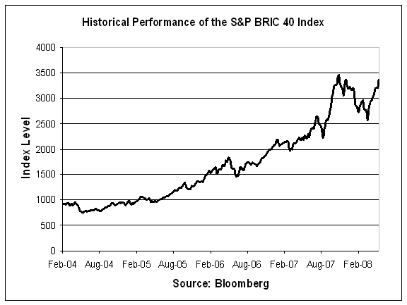 The performance of the S&P BRIC 40 Index, as well as the Basket, is based on hypothetical historical analysis and does not necessarily reflect the future performance of the S&P BRIC 40 Index or the Basket. The method of calculation used for this hypothetical historical analysis is the same as the method used to determine the S&P BRIC 40 closing level on the pricing date.