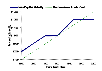 The following graph demonstrates the hypothetical total return on the notes at maturity for a sub-set of the Index Fund Returns detailed above (-30% to 30%). Your investment may result in a loss of up to 90% of your principal at maturity.