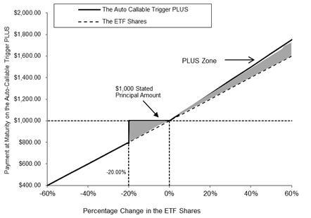 | Early redemption: | If, on the redemption observation date, the closing price of one ETF Share is greater than or equal to the initial share price, the Trigger PLUS will be automatically redeemed for the early redemption payment on the redemption date. No further payments will be made on the Trigger PLUS once they have been redeemed. In addition, if the Trigger PLUS are automatically redeemed prior to maturity, you will not benefit from the leverage feature that applies to the payment at maturity if the final share price is greater than the initial share price. Moreover, if the Trigger PLUS are automatically redeemed, your investment may underperform the ETF Shares, and the early redemption payment may be significantly less than the payment at maturity you would receive for the same level of appreciation of the ETF Shares had the Trigger PLUS not been automatically redeemed and instead remained outstanding until maturity. |