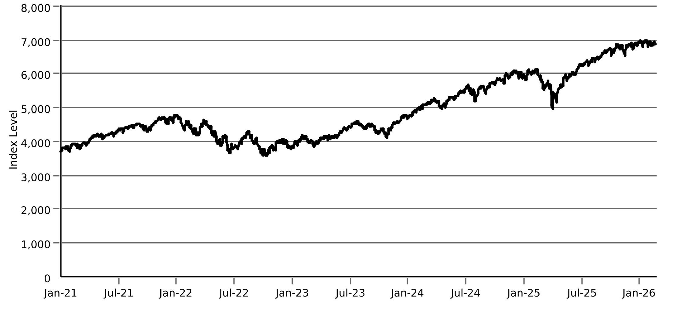 The graph below shows the closing levels of the underlier on each day from January 4, 2021 through March 2, 2026. The closing level of the underlier on March 2, 2026 was 6,881.62. We obtained the closing levels shown above and in the graph below from the Bloomberg Professional® service (“Bloomberg”), without independent verification.