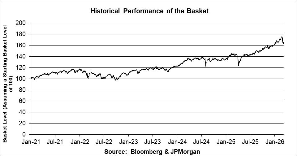If your notes are not automatically called, the amount that you will be paid on your notes on the stated maturity date is based on the performance of the basket as measured from and including the trade date (March 11, 2026) to and including the determination date (March 13, 2028, subject to adjustment). If the final basket level on the determination date is greater than the initial basket level, the return on your notes will be positive. If the final basket level declines by up to 10.00% from the initial basket level, you will receive the principal amount of your notes. If the final basket level declines by more than 10.00% from the initial basket level, the return on your notes will be negative. You could lose your entire investment in the notes. Any payment on the notes is subject to the credit risk of JPMorgan Chase Financial Company LLC (“JPMorgan Financial”), as issuer of the notes, and the credit risk of JPMorgan Chase & Co., as guarantor of the notes.