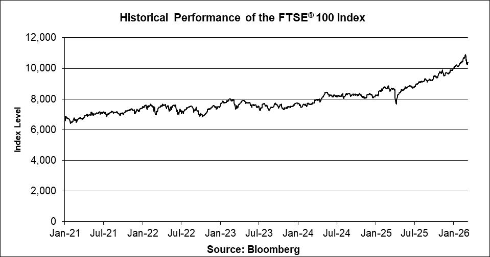 The FTSE® 100 Index is an index calculated, published and disseminated by FTSE Russell. The FTSE® 100 Index measures the composite price performance of stocks of the largest 100 companies (determined on the basis of market capitalization) traded on the London Stock Exchange. For additional information about the FTSE® 100 Index, see the information set forth under “Equity Index Descriptions — The FTSE® 100 Index” on page US-8 of the accompanying underlying supplement.