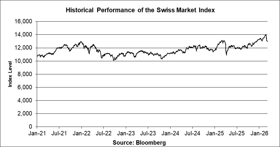 | Swiss Market Index | SMI | 11.00% | 12,958.59 |