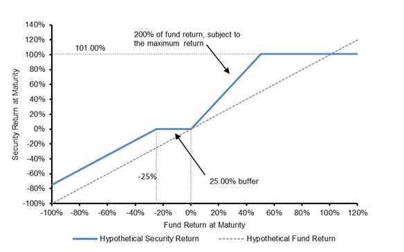 If the ending price is less than the threshold price, you will have 1-to-1 downside exposure to the decrease in the price of the Fund in excess of the buffer amount, and you will lose some, and possibly up to 75%, of the principal amount of your securities at maturity.