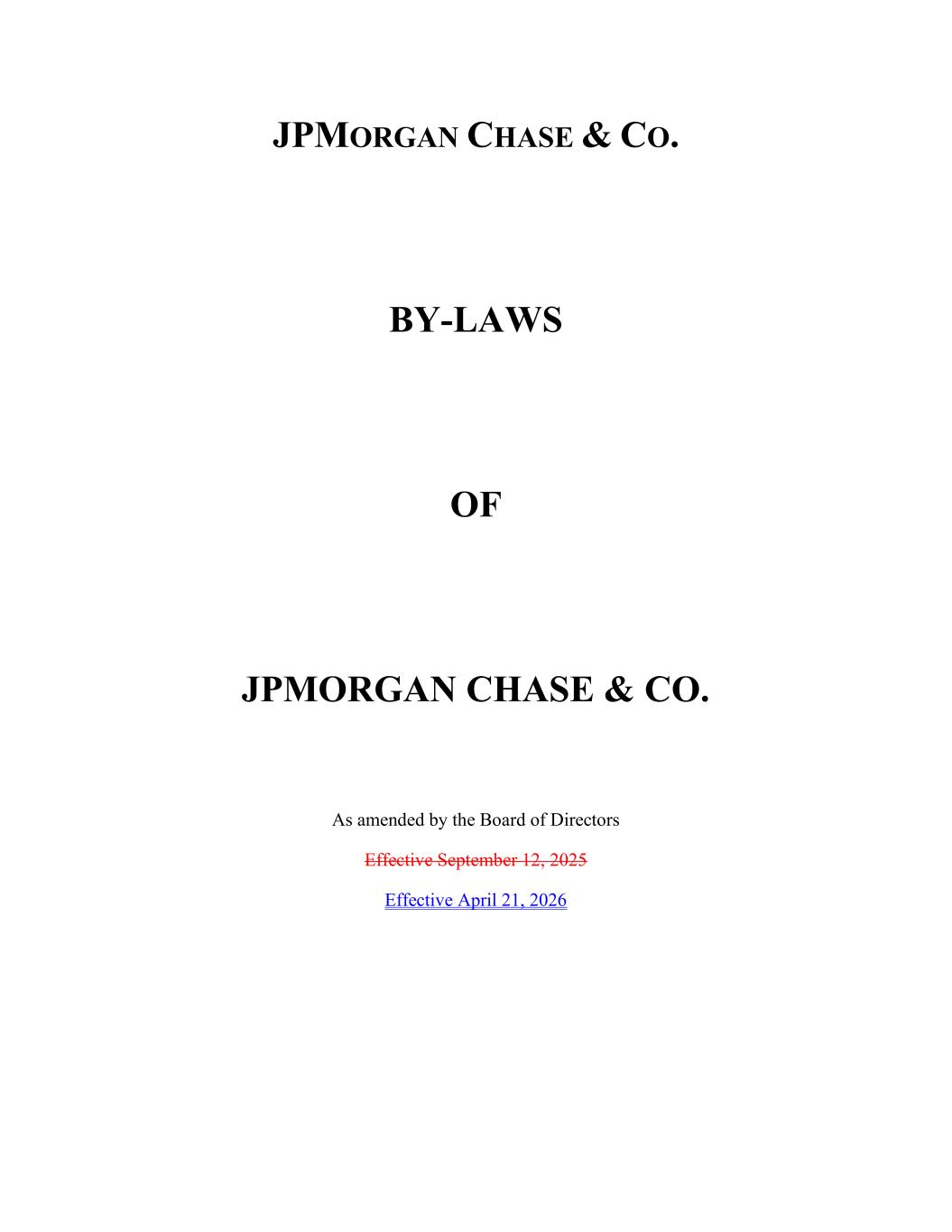 JPMORGAN CHASE & CO. BY-LAWS OF JPMORGAN CHASE & CO. As amended by the Board of Directors Effective September 12, 2025 Effective April 21, 2026